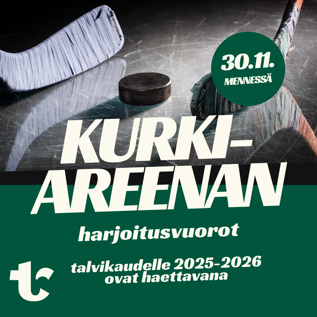 Kurkiareenan harjoitusvuorot talvikaudelle 2025-2026 ovat haettavana