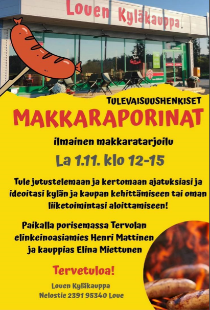 Tule jutustelemaan ja kertomaan ajatuksiasi ja ideoitasi kylän ja kaupan kehittäiseen tai oman liiketoimintasi aloittamiseen!