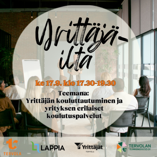 Tervolan Yrittäjäilta 17.9.2025: Teemana yrittäjän kouluttautuminen ja koulutuspalvelut